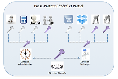 le passe général : permet d’ouvrir tous les accès auxquels l’organigramme est rattaché. Couramment appelé le passe partout.