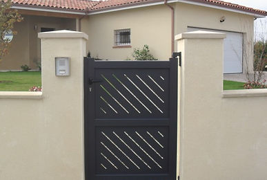 Assorti au portail, le portillon permet le passage piétonnier sans utiliser l'accès principal réservé aux véhicules. Sa fermeture est assurée par une serrure à canon européen (ou une gâche électrique, en option). Il possède les mêmes caractéristiques que les portails battants et coulissants (Meca'clav, remplissages). Il est toujours réalisé en 1 vantail.